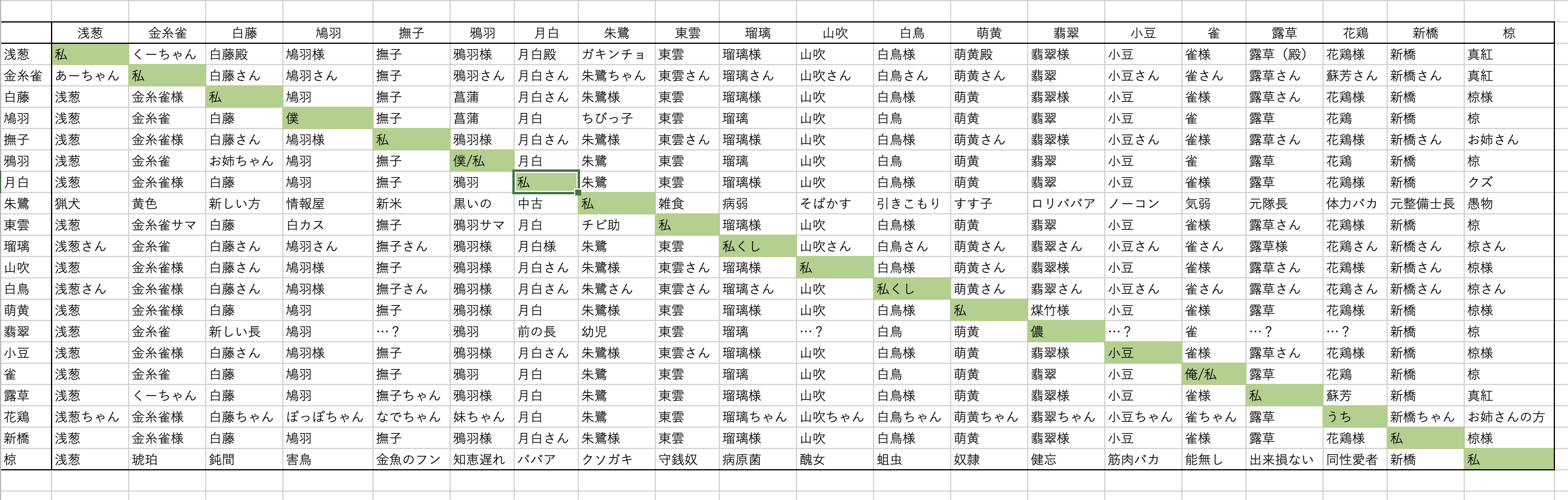 呼び方一覧(仮)をご用意いたしました。