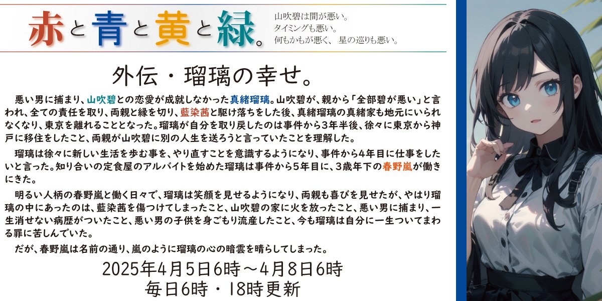 その言葉に従って、幸せになった碧の裏側、瑠璃サイドの話を外伝で書くことにしました。