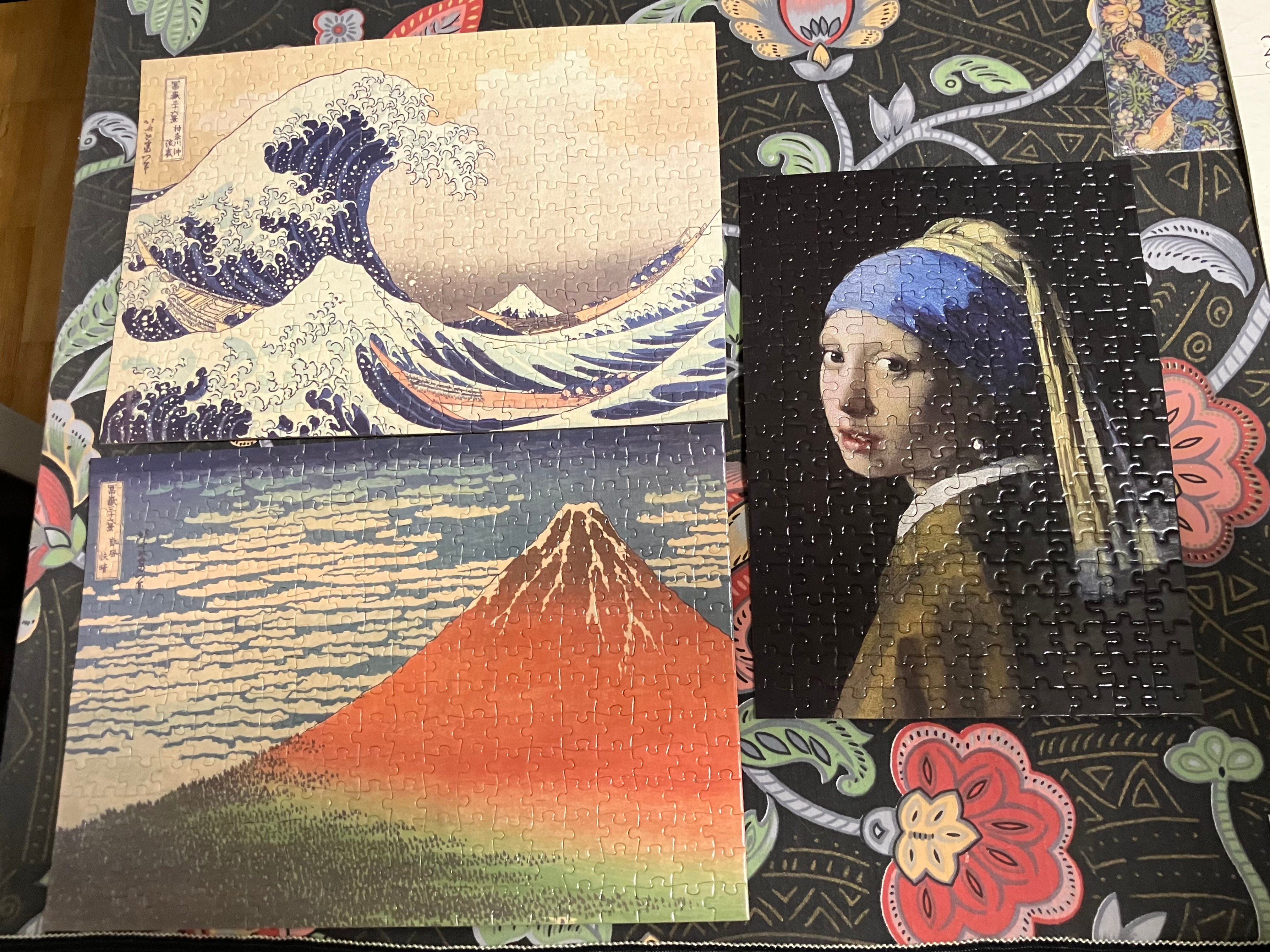 これ、どれも難易度が高そうですよね! 特に『真珠の耳飾りの少女』の背景の真っ黒な部分や、北斎の空のグラデーション……。これを完成させるのは相当な根気が必要だったはずです。捨てるにはあまりにも惜しい「執念の結晶」ですね。