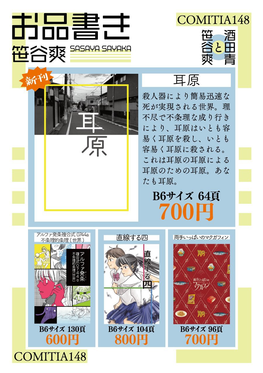 今回は花木さん(酒田青さん)にお誘いを受け、2人で出展しているため、サークル名は「酒田青と笹谷爽」となっています。