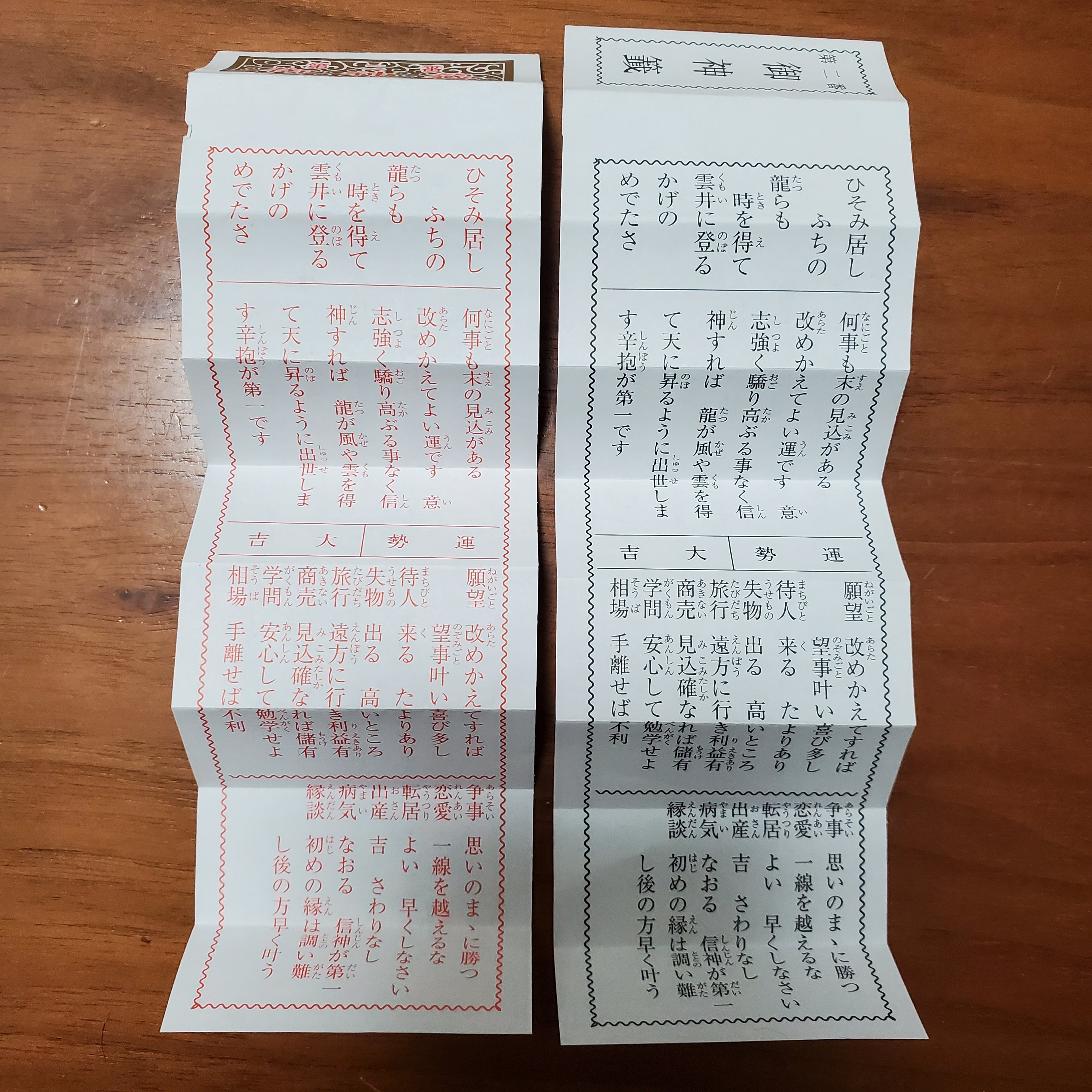 https://kakuyomu.jp/works/16818093073944114387画像は年始に氏神様で引いたおみくじ(左)とこの前出先で引いたおみくじ(右)