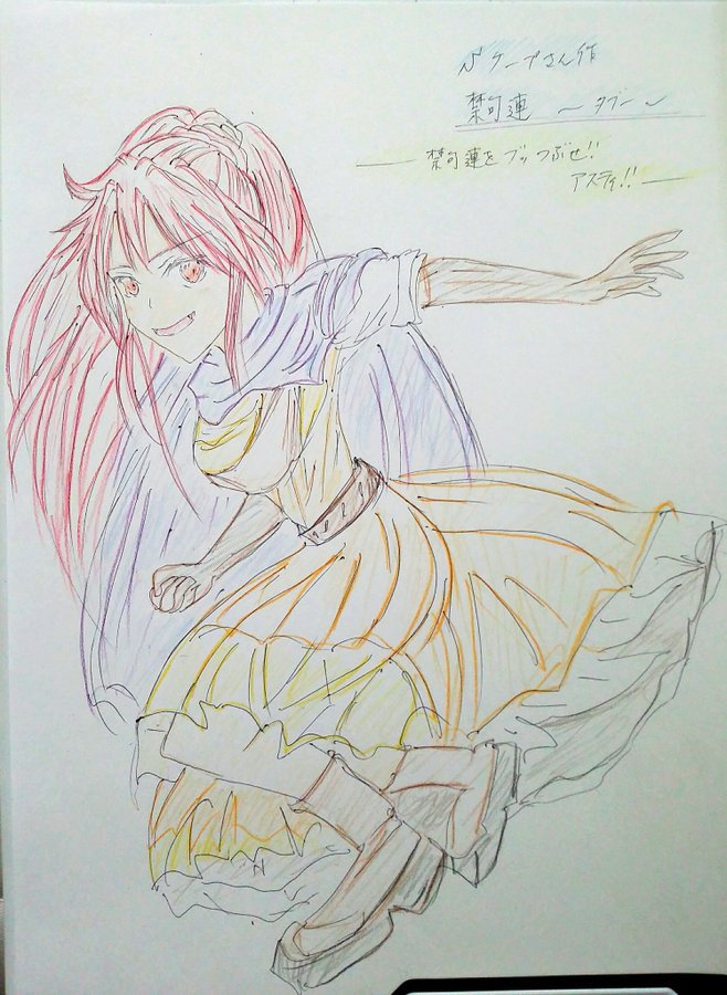 主人公アスティのイラストですね。猪突猛進でちょっと口の悪いキャラで、バトルでは最速のスピード・回復魔法・安定した火力を生かしたバランス型のキャラです。その特徴が表現された素晴らしいイラストだと思います。