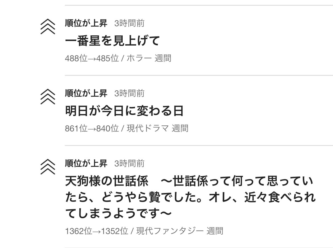 今朝も数作ランクアップ通知をいただきました。