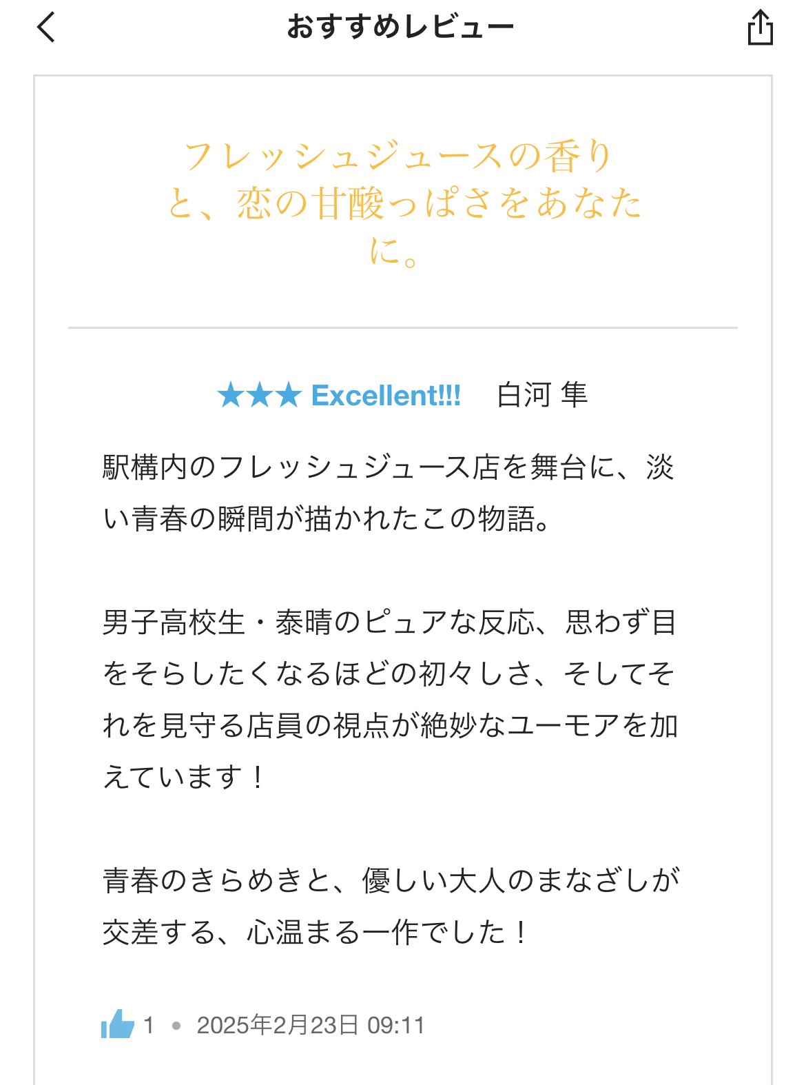 昨日公開した、魔法のiらんど短編コンテスト参加作品の【ざわめきは、海の中】に、嬉しいレビューをいただきました!