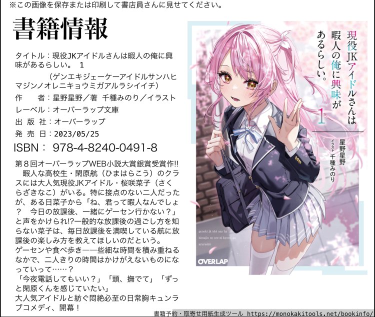 5月25日発売の【現役JKアイドルさんは暇人の俺に興味があるらしい。】の書籍情報と、表紙絵が解禁されました!