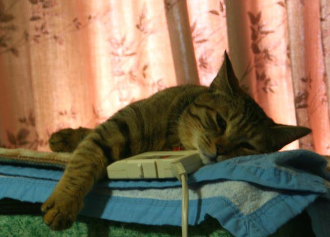 寒くなって来たという話をしましたので、電気マットの上でダメになっている猫の写真です。