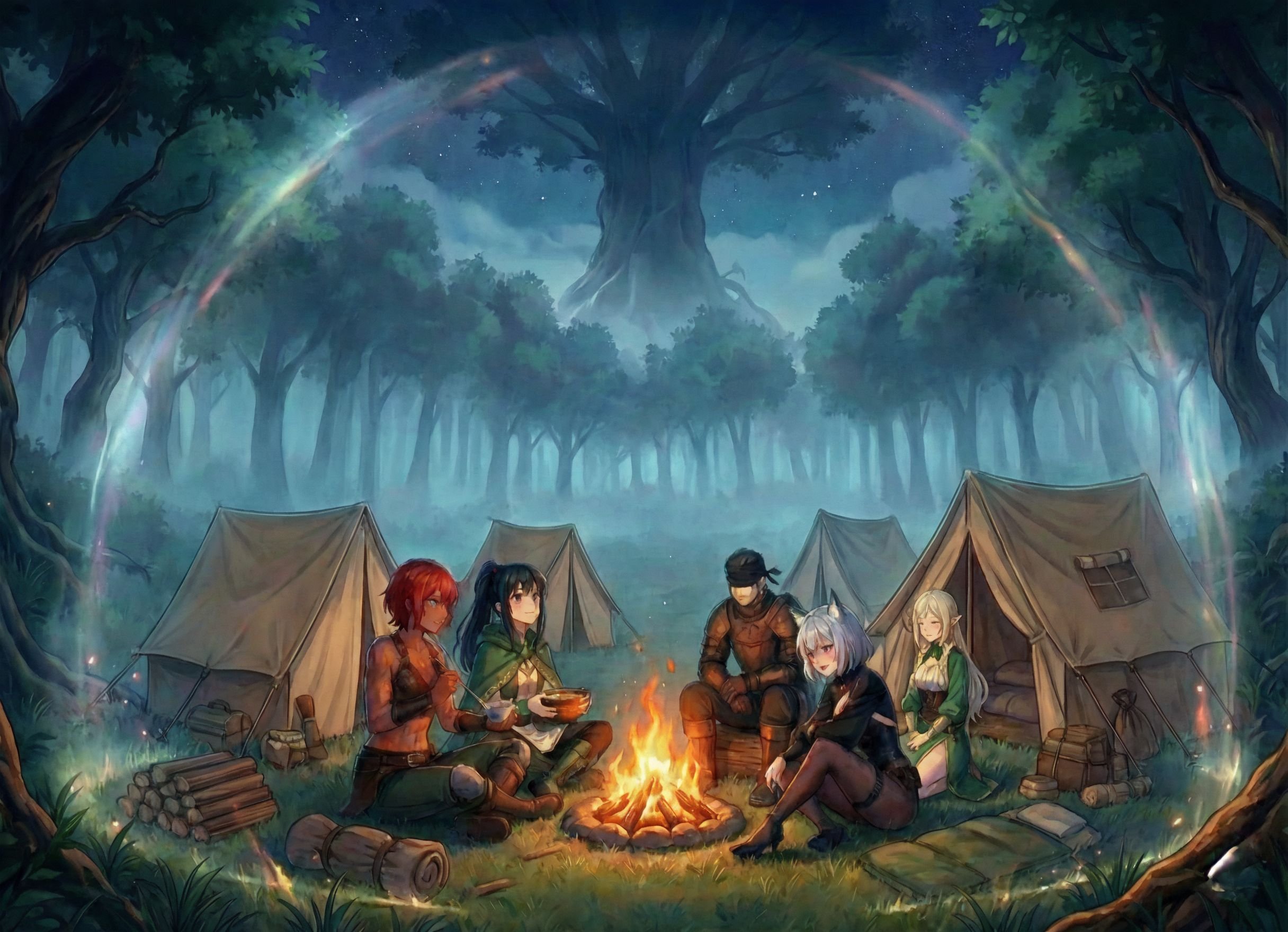 本日公開の『異界の月のソプラニスタ』第17話の挿絵を公開します! 激戦を終えたフェルガン達との、束の間の野営シーンです。
