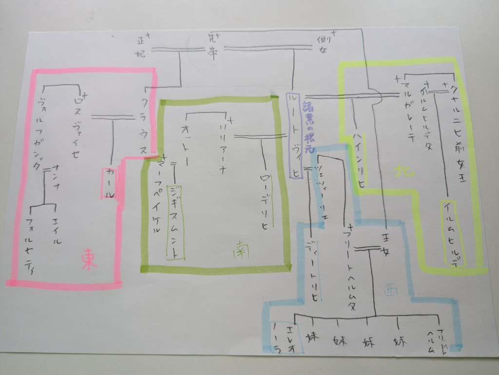 何ヵ月も前から言っていたロイデン帝国のルートヴィヒ帝周辺の家系図、ようやく書けたので掲載します。