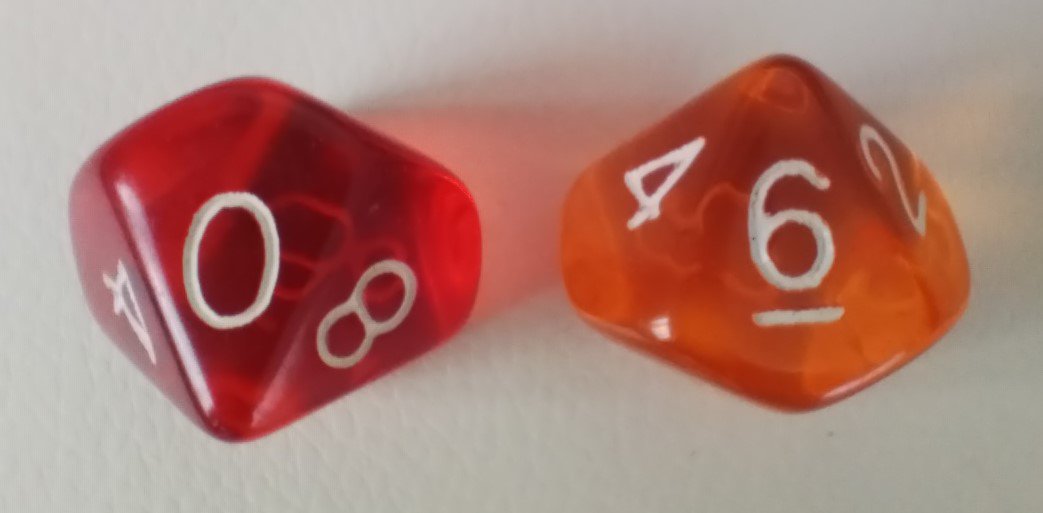 1以下の写真のように十面体ダイスを振って乱数を発生