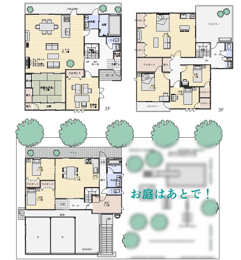 ポリゴン町の三階建てのお家。二世帯で事務所あり。