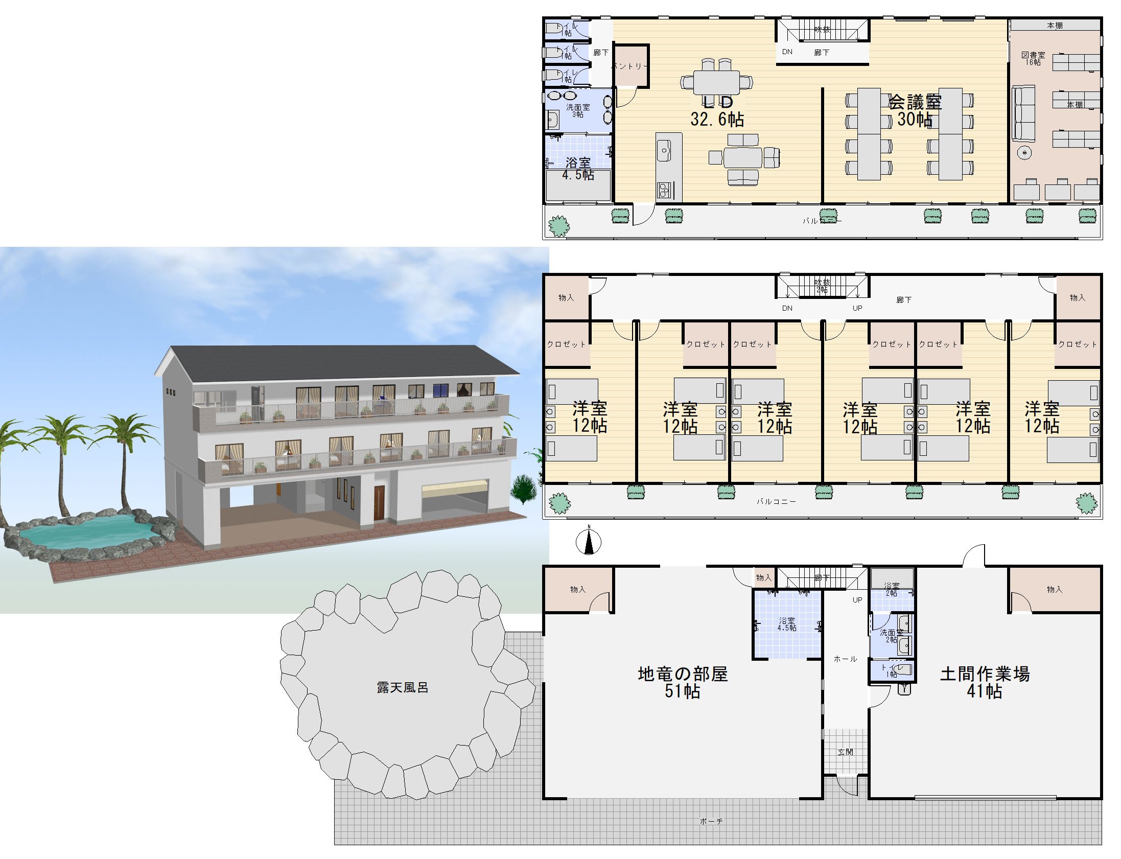 基本二人部屋で、共用だけどやたら風呂が多くて、清潔なゴブリンたち。