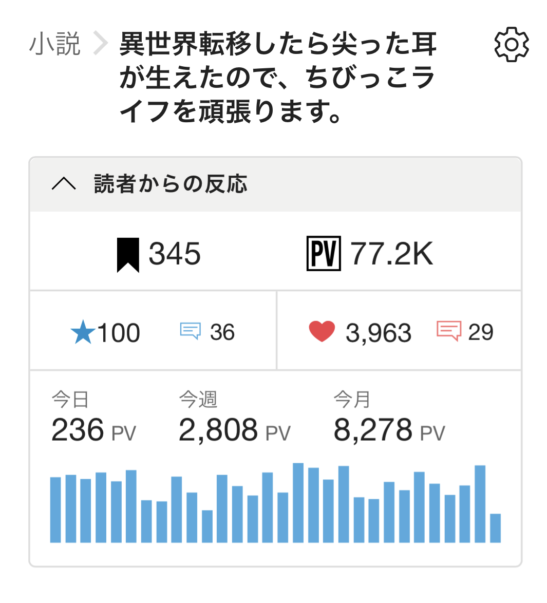 現在も連載中の第1作目 『異世界転移したら尖った耳が生えたので、ちびっこライフを頑張ります。』