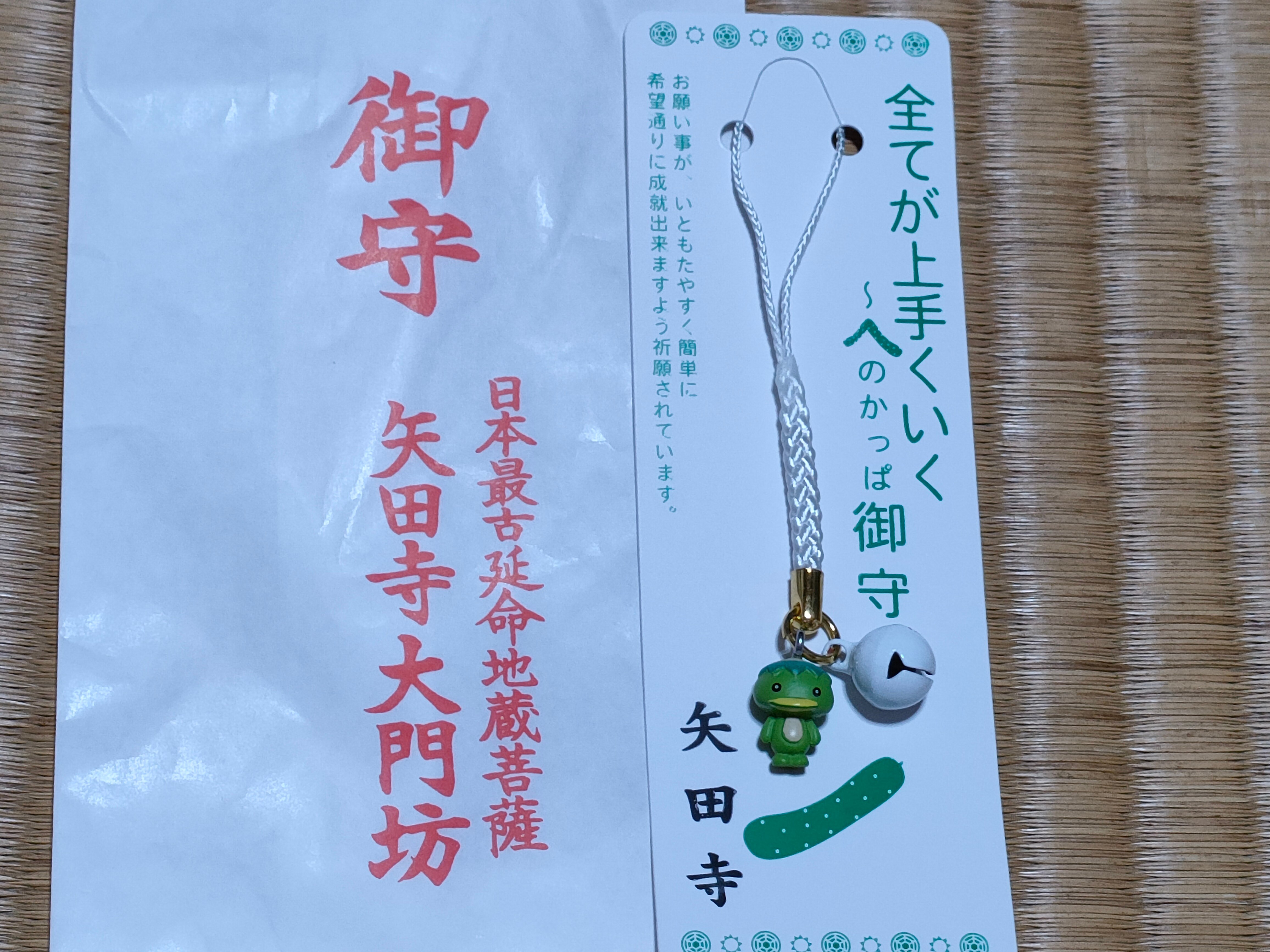 アジサイの写真は検索すればきれいなものが出てきますし、僕が撮った写真には他の参拝者さんたちが映ってしまっているので、代わりに矢田寺のお守りの写真を載せておきます(画面が暗くてすみません)。