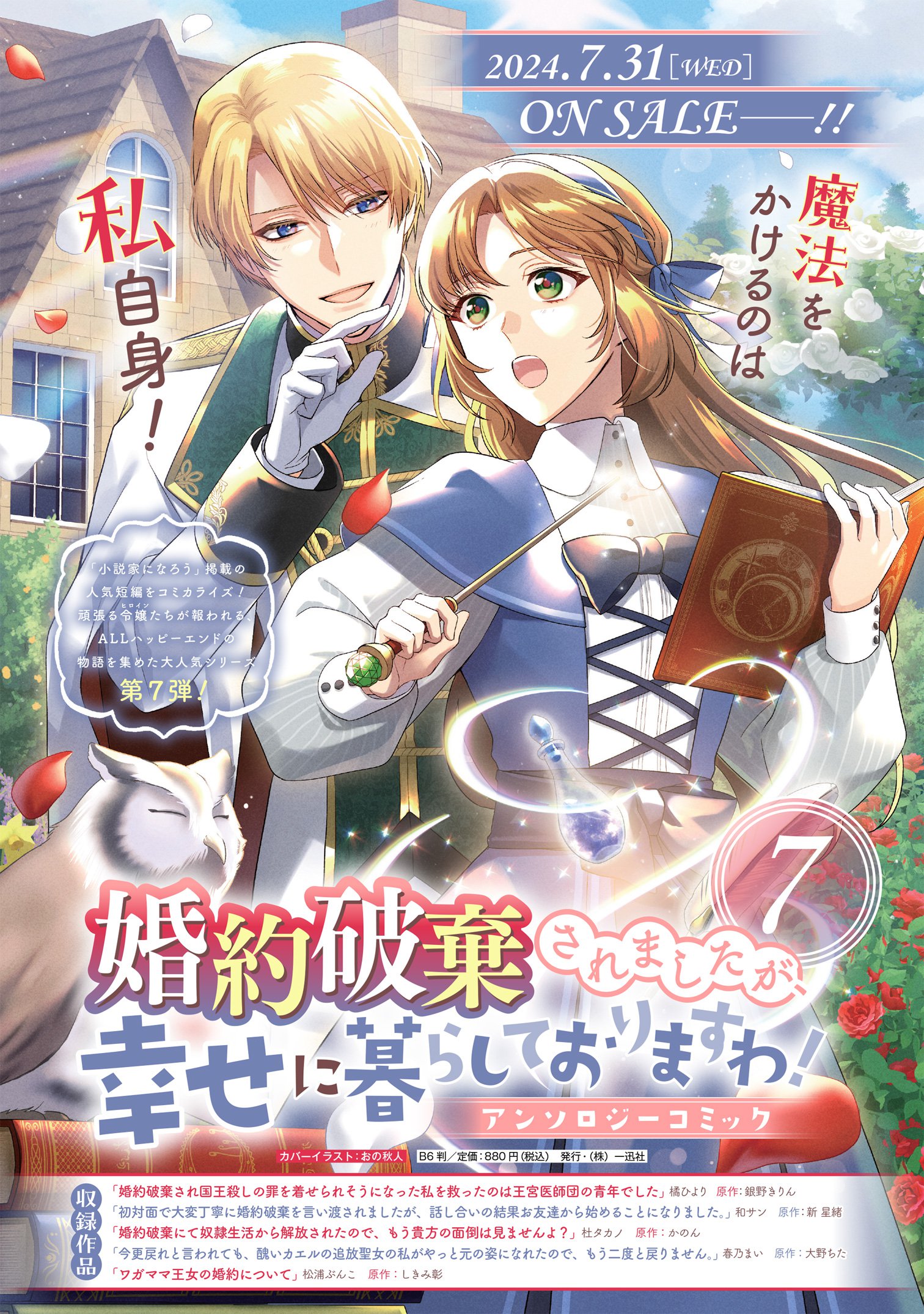 『婚約破棄され国王殺しの罪を着せられそうになった私を救ったのは王宮医師団の青年でした』が、R6.7/31発売『婚約破棄されましたが、幸せに暮らしますわ!アンソロジーコミック7』(一迅社様)に収録していただきました。