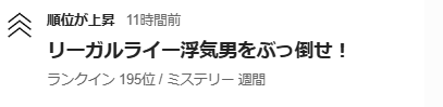 画像の通り、ミステリー週間ランキングの順位が上昇しました。
