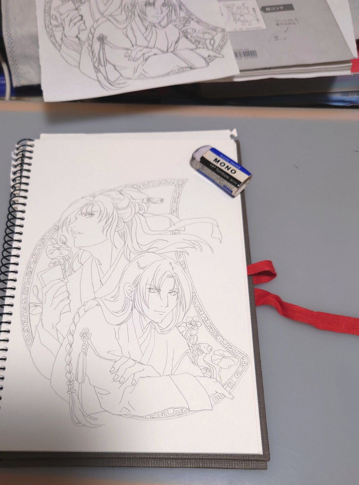 20年ぶりじゃないかしら。スケッチブックを引っ張り出しました。時間がなくて、水彩紙にシャーペンで線画をトレスして、今日の作業は終わりました。