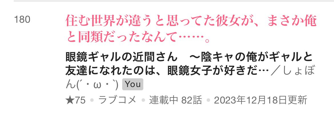 ちなみに、現在カクヨムコン9はラブコメジャンルで180位。