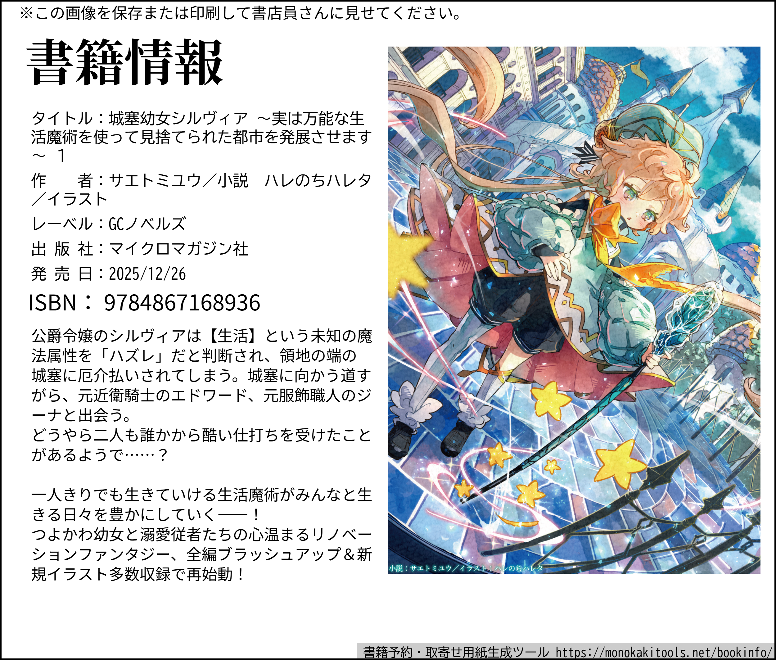12月26日、城塞幼女シルヴィアがGCノベルズから装い新たに刊行します!