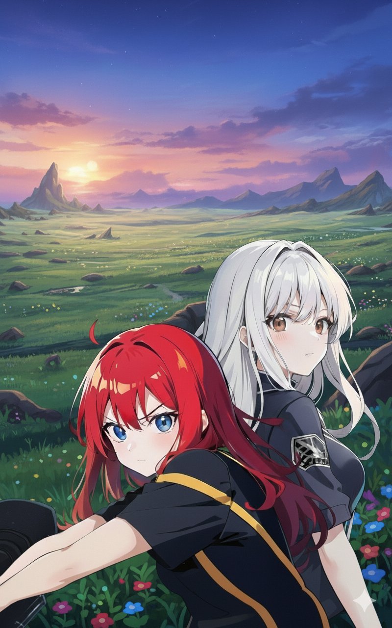 リベレーターを簡潔に表したイメージ画でノエル(銀髪)とエイミー(赤髪)です