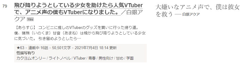 さて、『飛び降りようとしている少女を助けたら人気VTuberで、アニメ声の僕もVTuberになりました。』ですが、