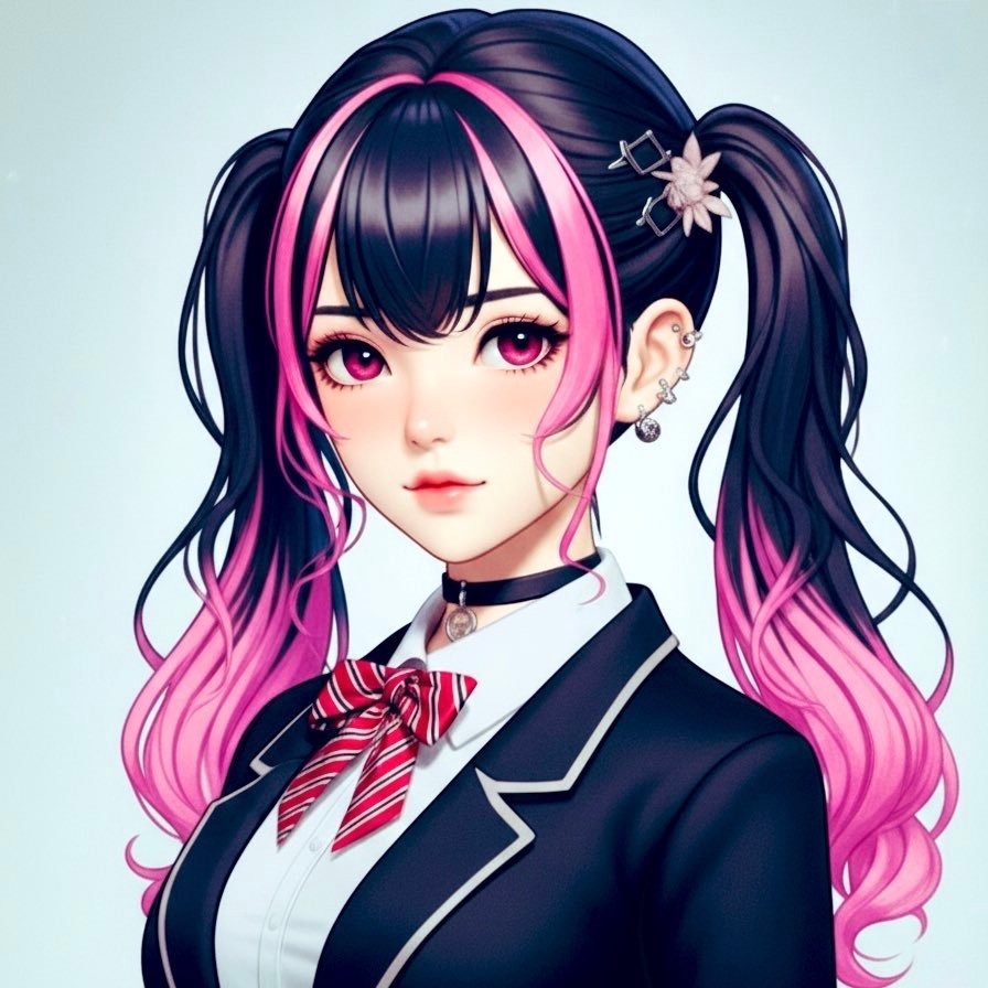 ツインテールと前髪のメッシュ。艶やかな黒髪に混ざるビビッドなピンク。
