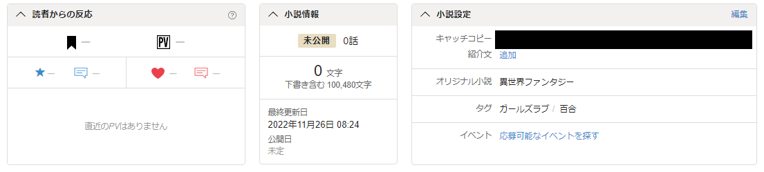 現在の下書き状況は40話100000字で、12月中旬頃の公開を目指しています。作品をより完成度高い姿で世に送り出したいので、もうしばらくお待ちくださいね。