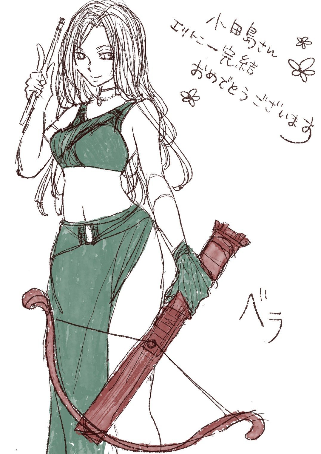緑のセパレートにボウガン持ってますから、これはセシルとアロイスがホランドの刺客に狙われた時、セシルを救ったシーンですよね? セシルが初めて人を斬ってヘナヘナへたりこんでたところを刺客に狙われ、すんでのところで後ろからベラがボウガンでズドン。「まったく、セシル、あんたこんなんで凹たれてるんじゃないのよ」って、いう場面が脳内に想起されますなあ。