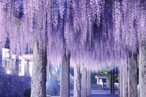 https://kakuyomu.jp/works/822139845903142207/episodes/822139846051225639 5月の連休に帰って来た拓真が、灯と車で出かけて、藤岡市の「ふじまつり」でデートをするお話です。下記は、その「ふじまつり」のライトアップの画像です。丘の斜面に沿って、この藤のトンネルが延々と350m続いています。わたくしも一度だけ行きましたが、ちょっと現実とは思われないような景色でしたね。