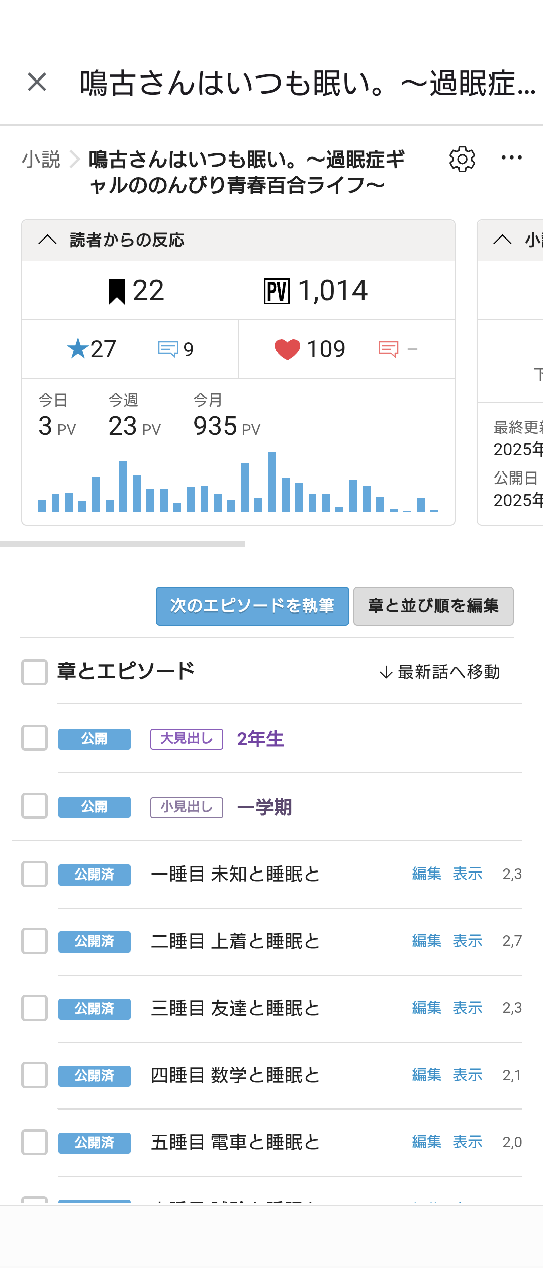 「鳴古さんはいつも眠い。〜過眠症ギャルののんびり青春百合ライフ〜」が1000PVを突破しました!