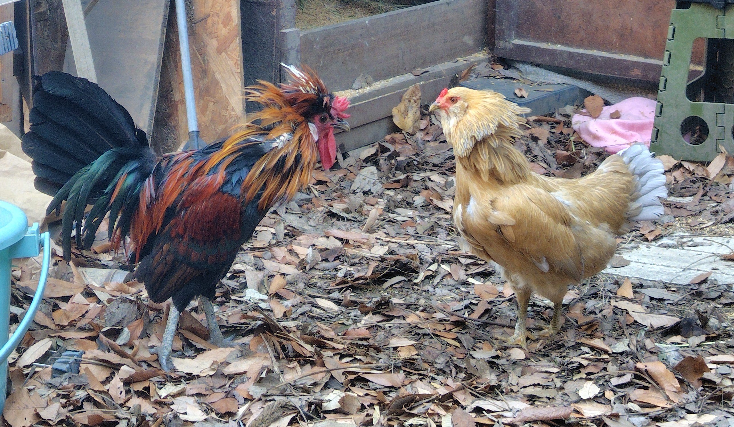 鶏の喧嘩は♂同士とは限らない、勇ましい♀(左)も居るのだっ!