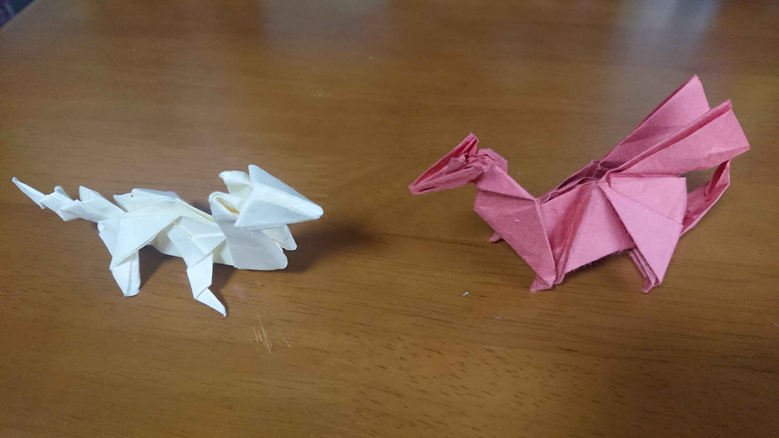 画像は辰年にちなんで、折り紙の白竜とレッドドラゴンです。兎を超える飛翔の年となることを願って。