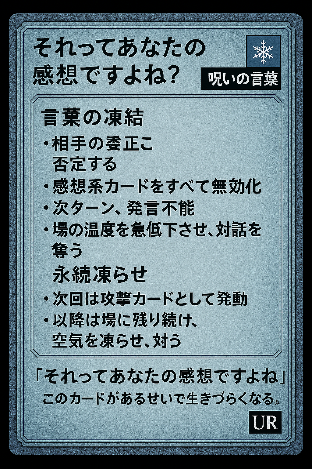 私が思う「それってあなたの感想ですよね?」は、呪われた言葉だと思っているのです。そのカードを作りました。