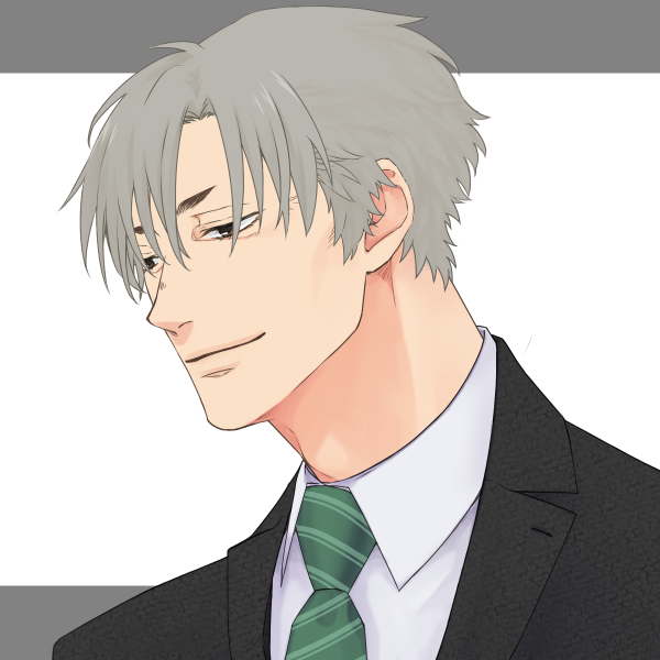 https://nana-music.com/sounds/046142dc備考:グレーの髪の毛(白髪ではない)笑うと下がる眉毛。目元は情熱と静けさを併せ持つ。