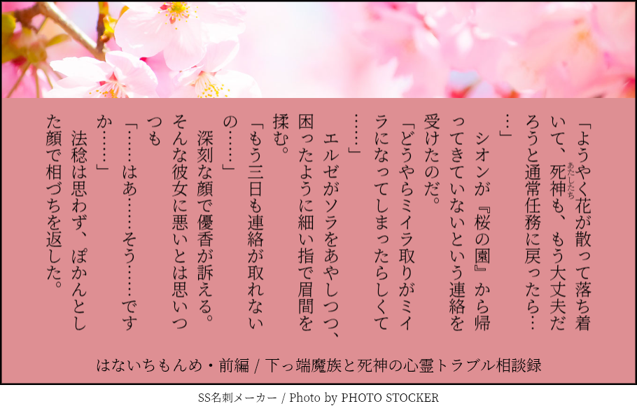「下っ端魔族と死神の心霊トラブル相談録」に新作「はないちもんめ」をUPしました。