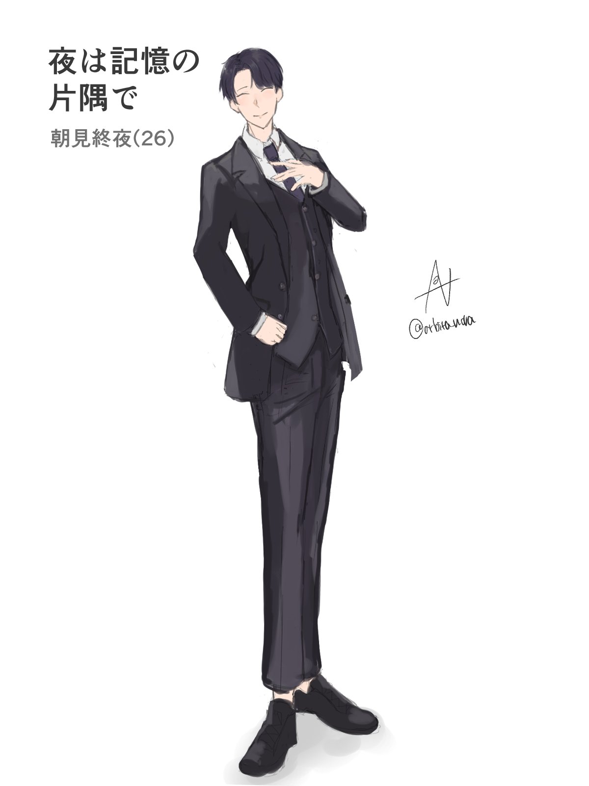 朝見終夜のキャラクターデザインを公開いたしました。