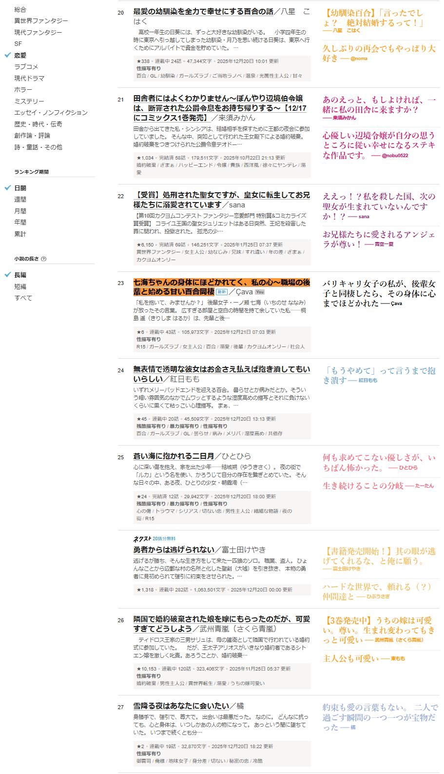 昨日、連載開始させていただきました「七海ちゃんの身体にほどかれてく、私の心~職場の後輩と始める甘い百合同棲」を、たくさんの方に読んでいただき、とてもうれしいです!