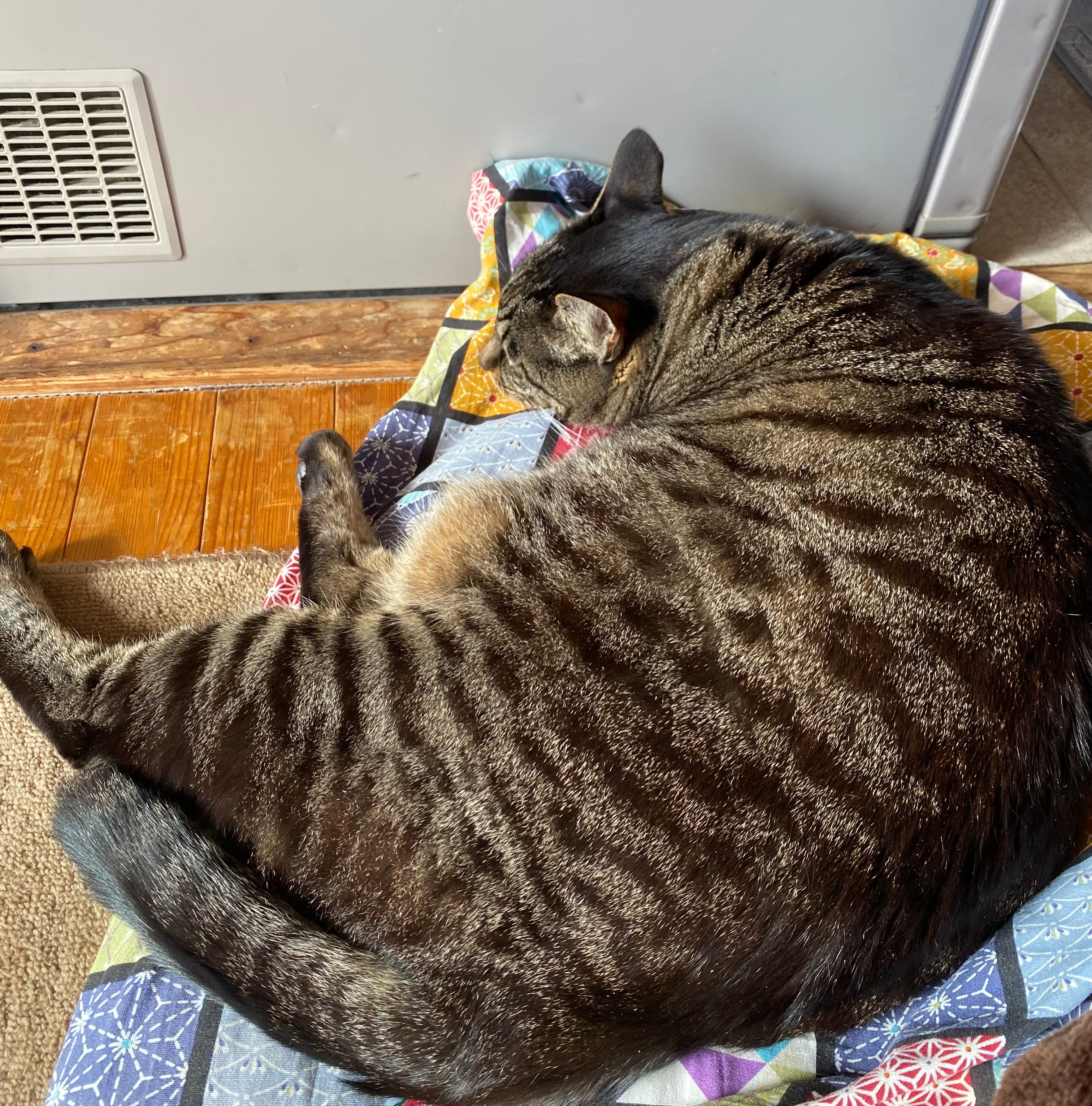 写真は猫様です。こたつと冷蔵庫の間にいます。