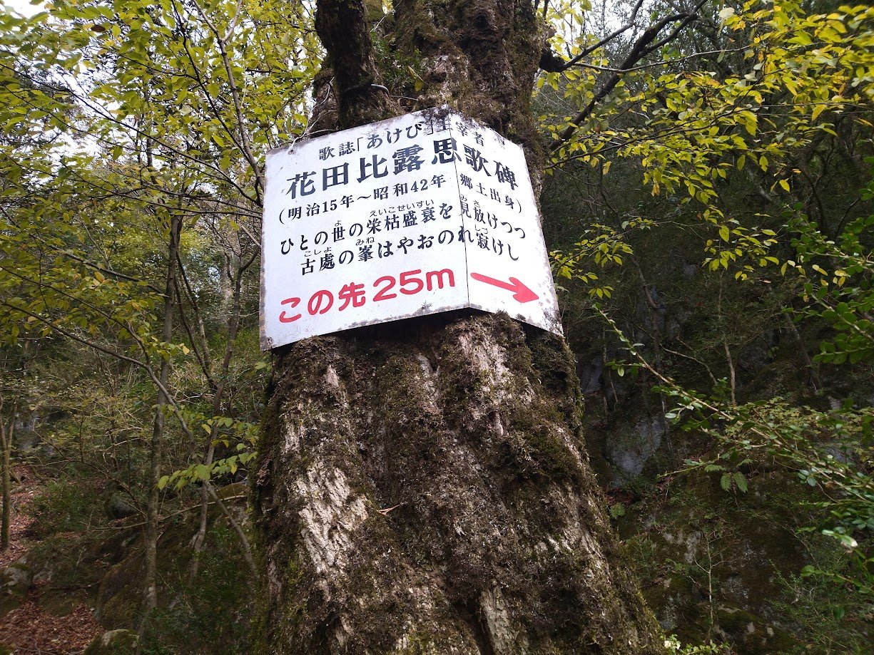 画像は先日登った古処山で見かけた歌碑の案内看板です。いい詩ですね^^。