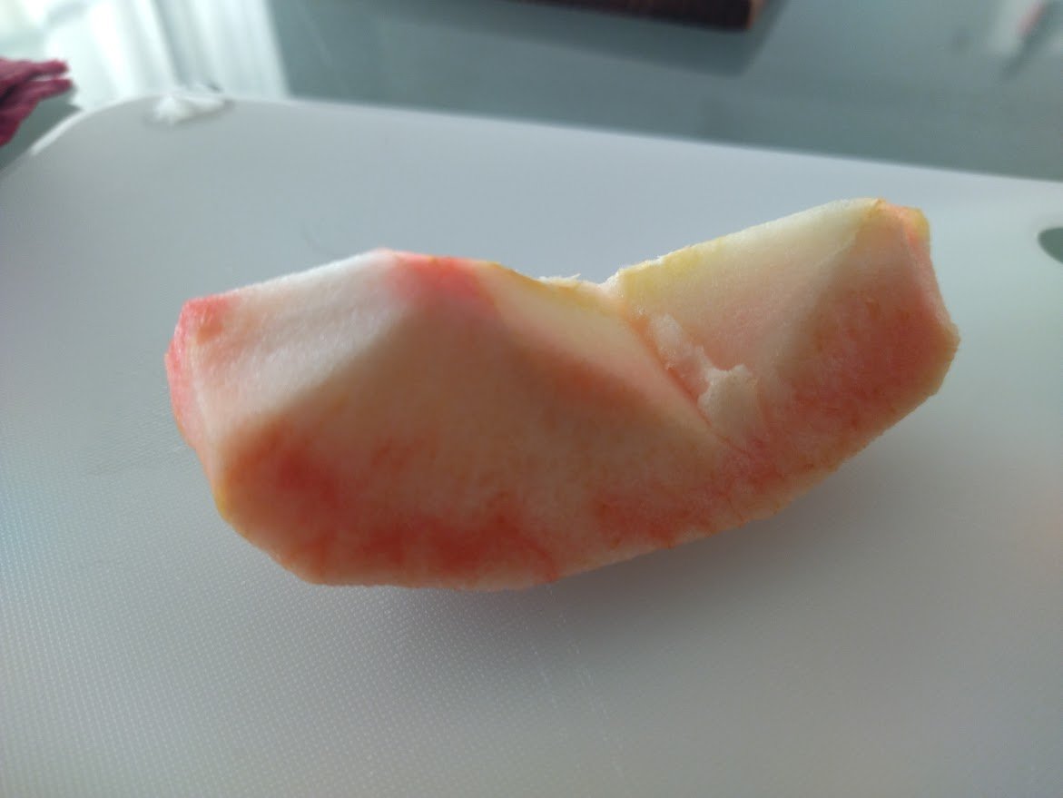画像は先日友人からもらったリンゴです。どうみても桃ですね^^こういう品種だそうです。大変おいしゅうございました。