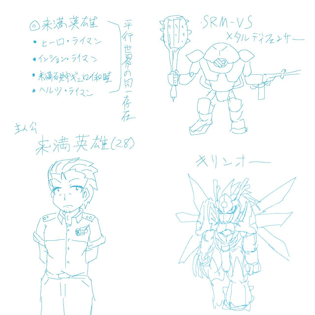 画像は、書き始める前にデザインした英雄とその愛機たちです。