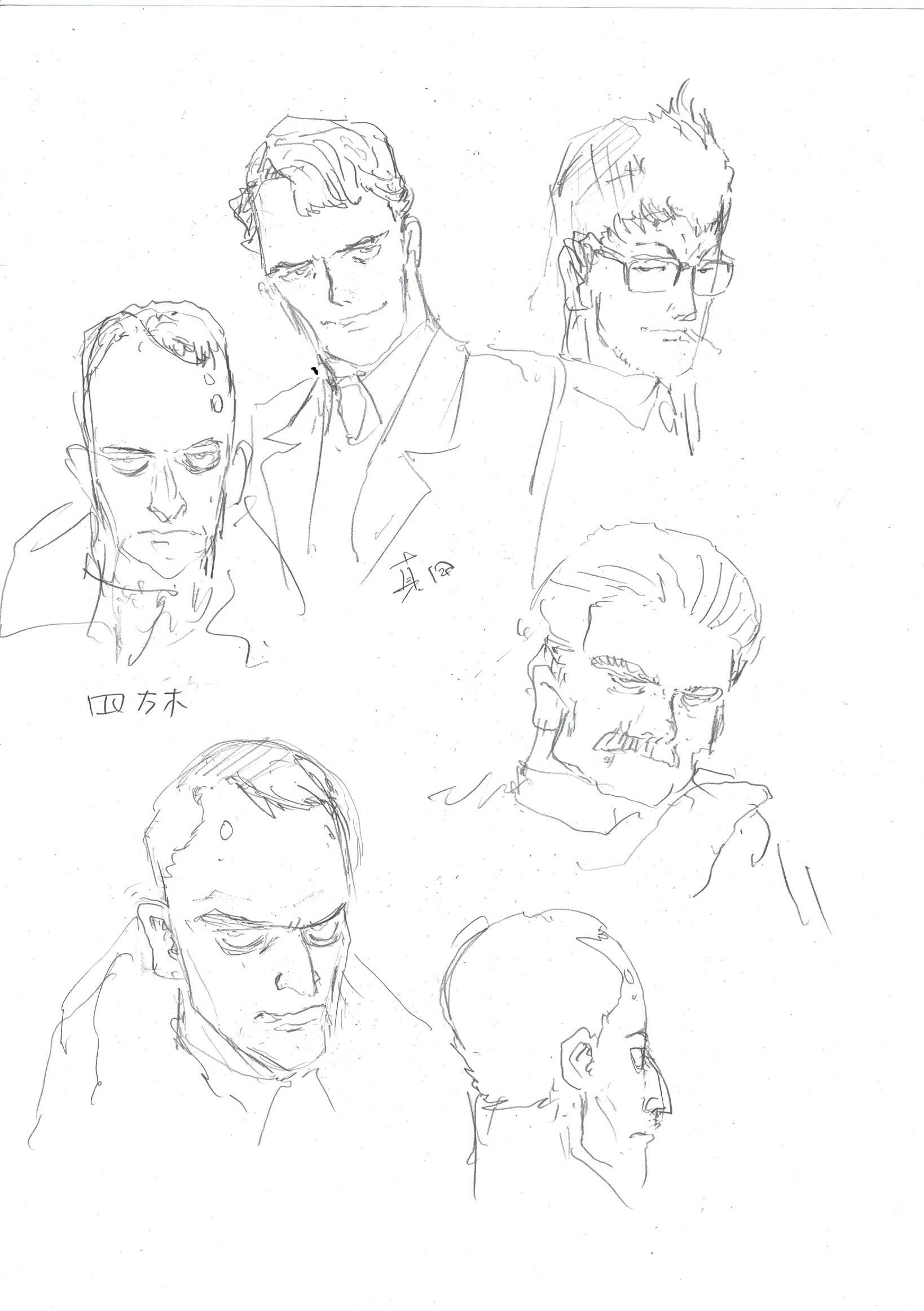 添付画像は均衡調整課の面々(男性陣です。そう! 拙作、主人公以外の男性の登場人物もちゃんと存在するのです!)のキャラデザ(かたやままこと先生)でございます。