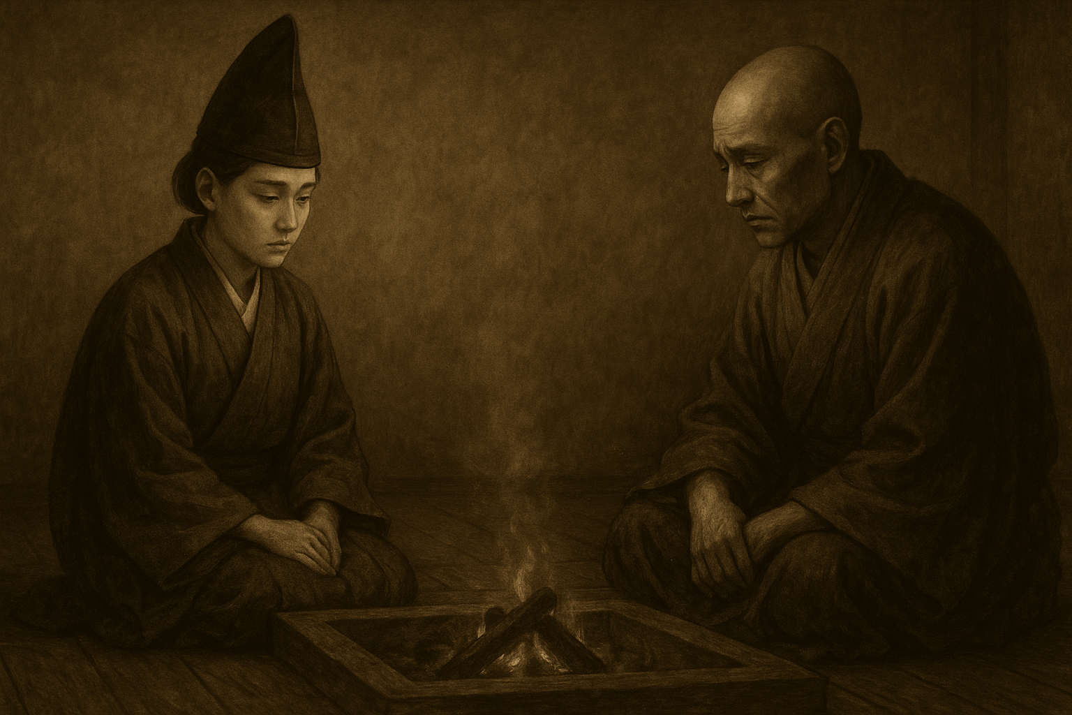 「大和物語」には、寺の庵での僧正遍昭(良岑宗貞)と小野小町の再会が描かれている。