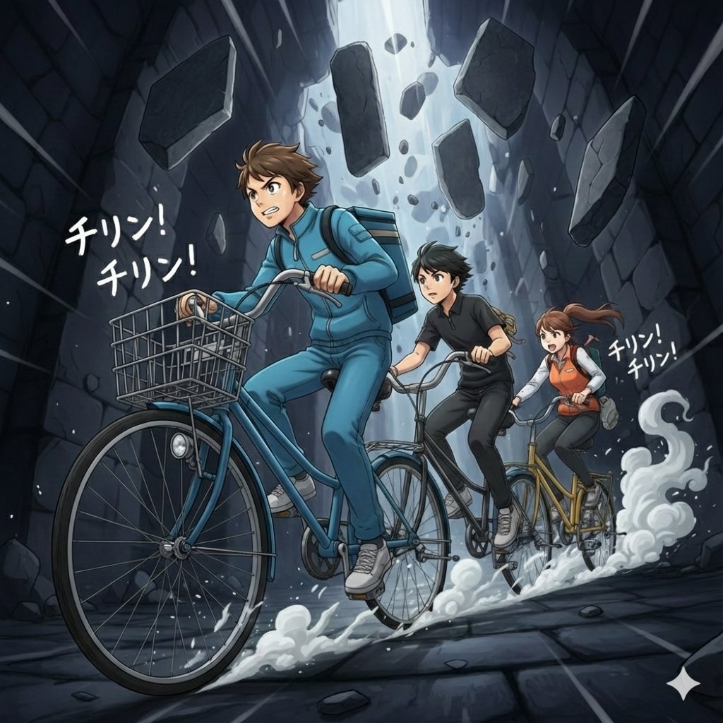 タイ○ボカンシリーズの、あの三人の敗走シーンをイメージしてましたかが、随分変わったチャリが生まれました。