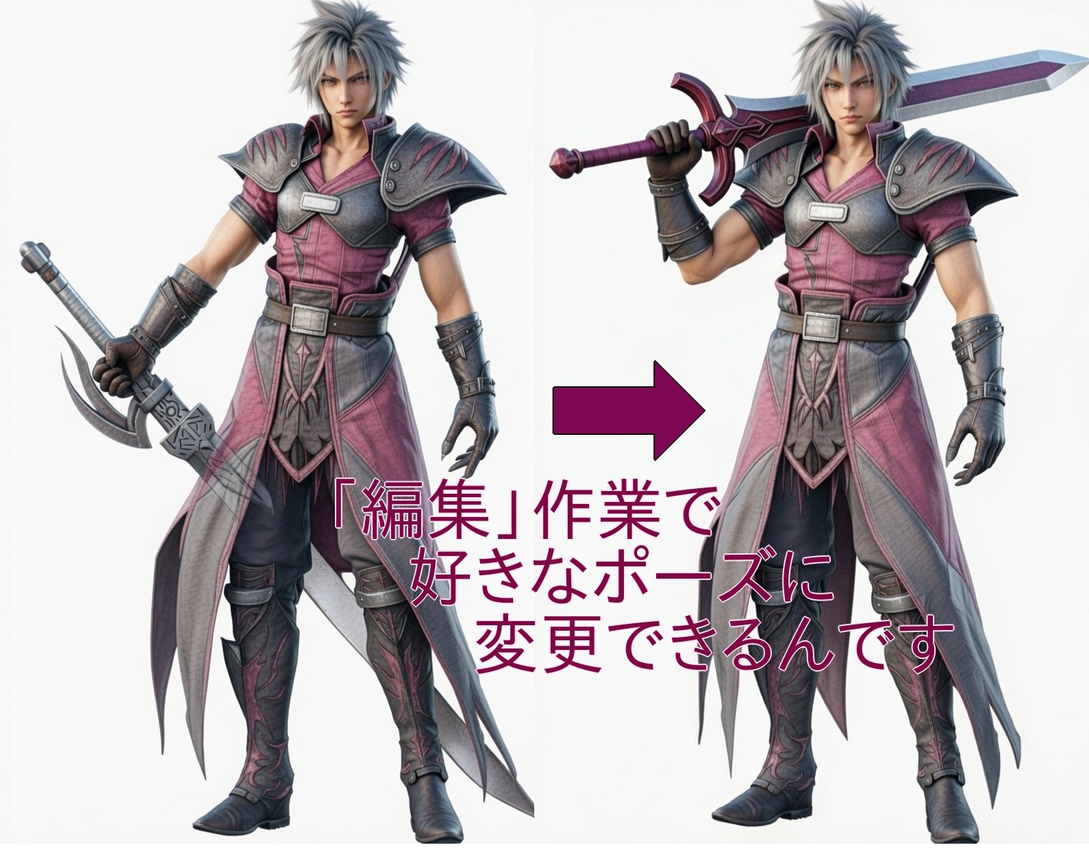 さらに、編集作業で「ポーズ」や「武器」さえも