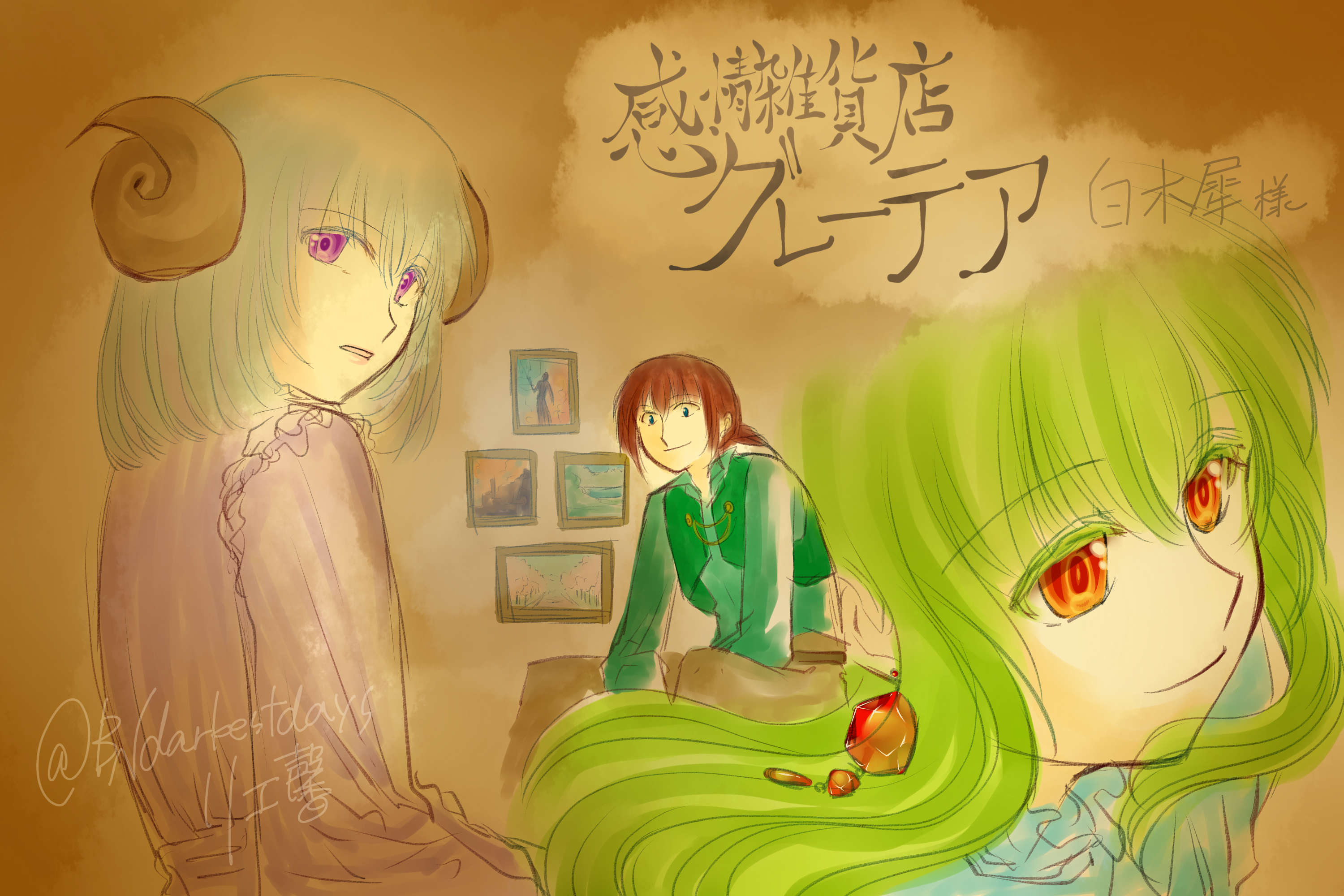https://kakuyomu.jp/users/BNdarkestdays )より、『感情雑貨店グレーテア』のファンアートをいただきました…!!! わーい!!!