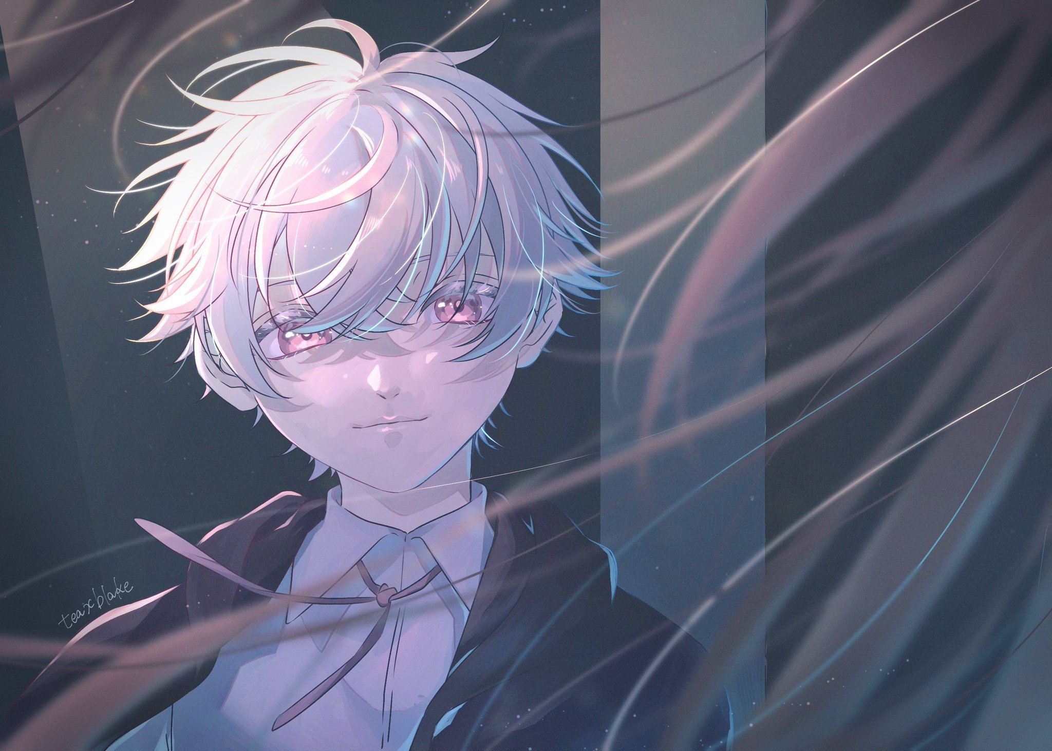 特徴・アルビノの少年。透き通るような白い肌と髪、燃えるような赤い瞳が特徴。ワイシャツに黒い外套が主なスタイル。