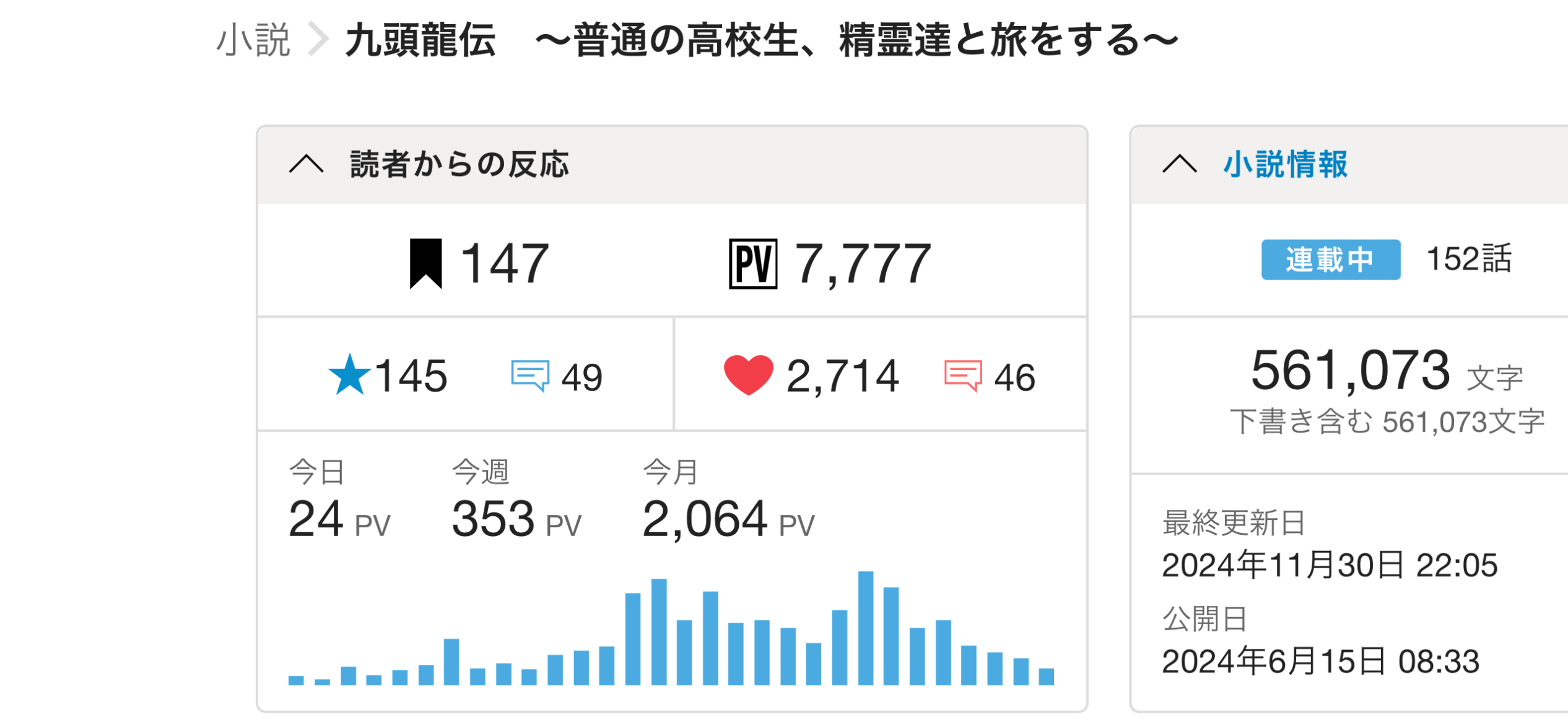 今月は初の月2000pvこえました。ひとえにお読み頂いた読者様方のおかげでございます。