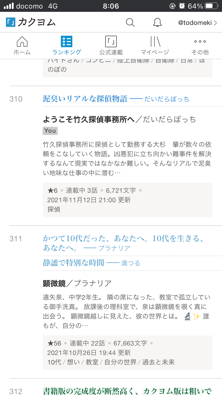 この度現代ドラマ部門において私の作品がランクインいたしました!
