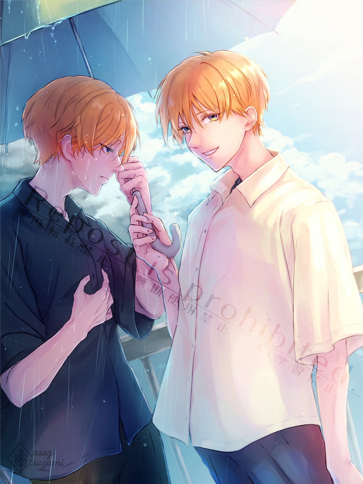 穏やかな笑みと相対する顔に伝うのは、はたして涙か雨か。