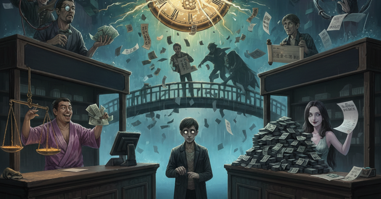 金融用語と運命の売買を掛け合わせた、救いなきカタルシス。 冷徹な再分配(ロスカット)の結末を、ぜひ最後まで見届けてください。